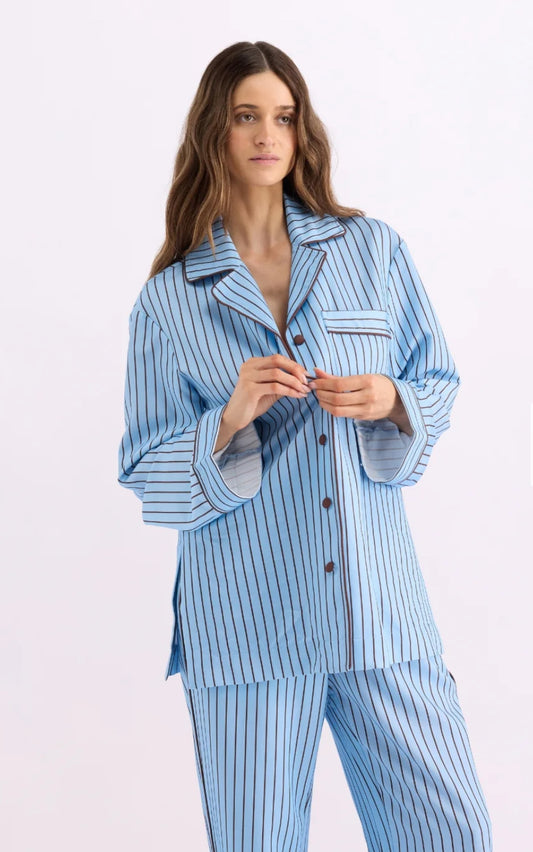 HOMMEY | Long Sleeve Sleep Shirt - Rocky Road Stripes