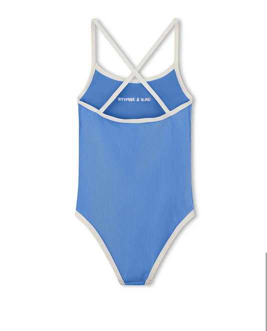 ZULU & ZEPHYR | MINI STRIPE RIB LOGO ONE PIECE - SKY