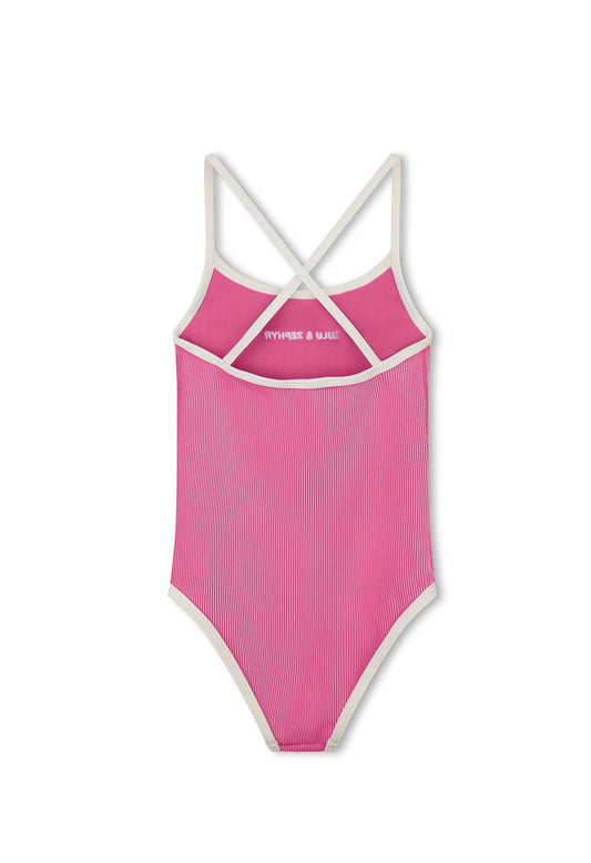 ZULU & ZEPHYR | MINI STRIPE RIB LOGO ONE PIECE - SHELL PINK