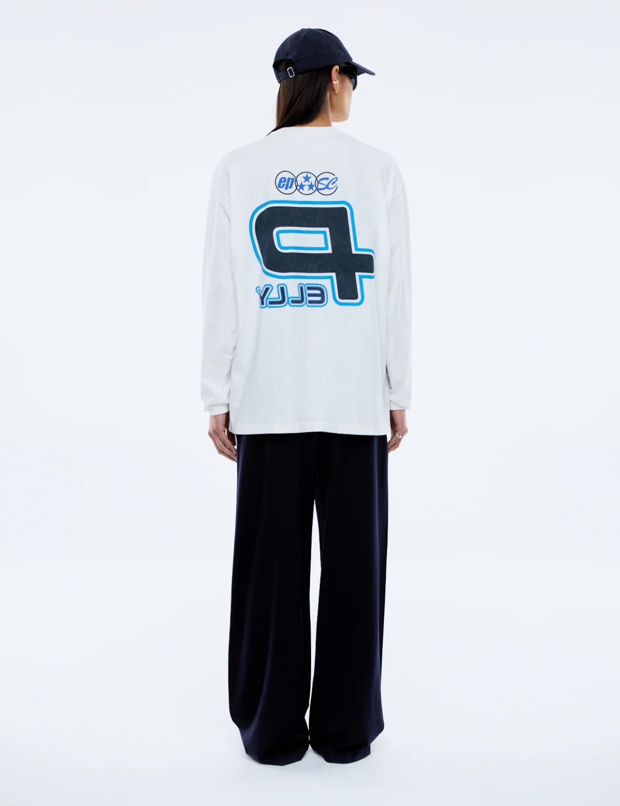 The Pelly Sport Jersey in vintage white cotton jersey features all-over water based artwork. Ribbed cuffs and a relaxed silhouette deliver effortless movement and elevated street energy.
