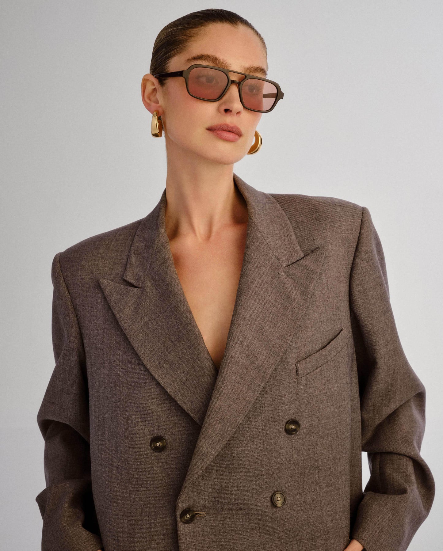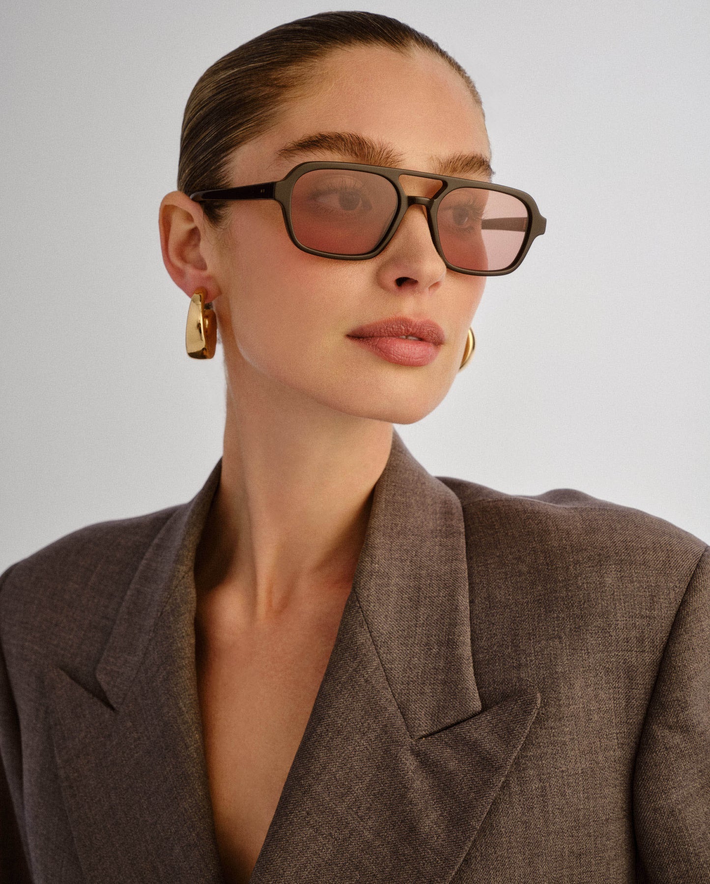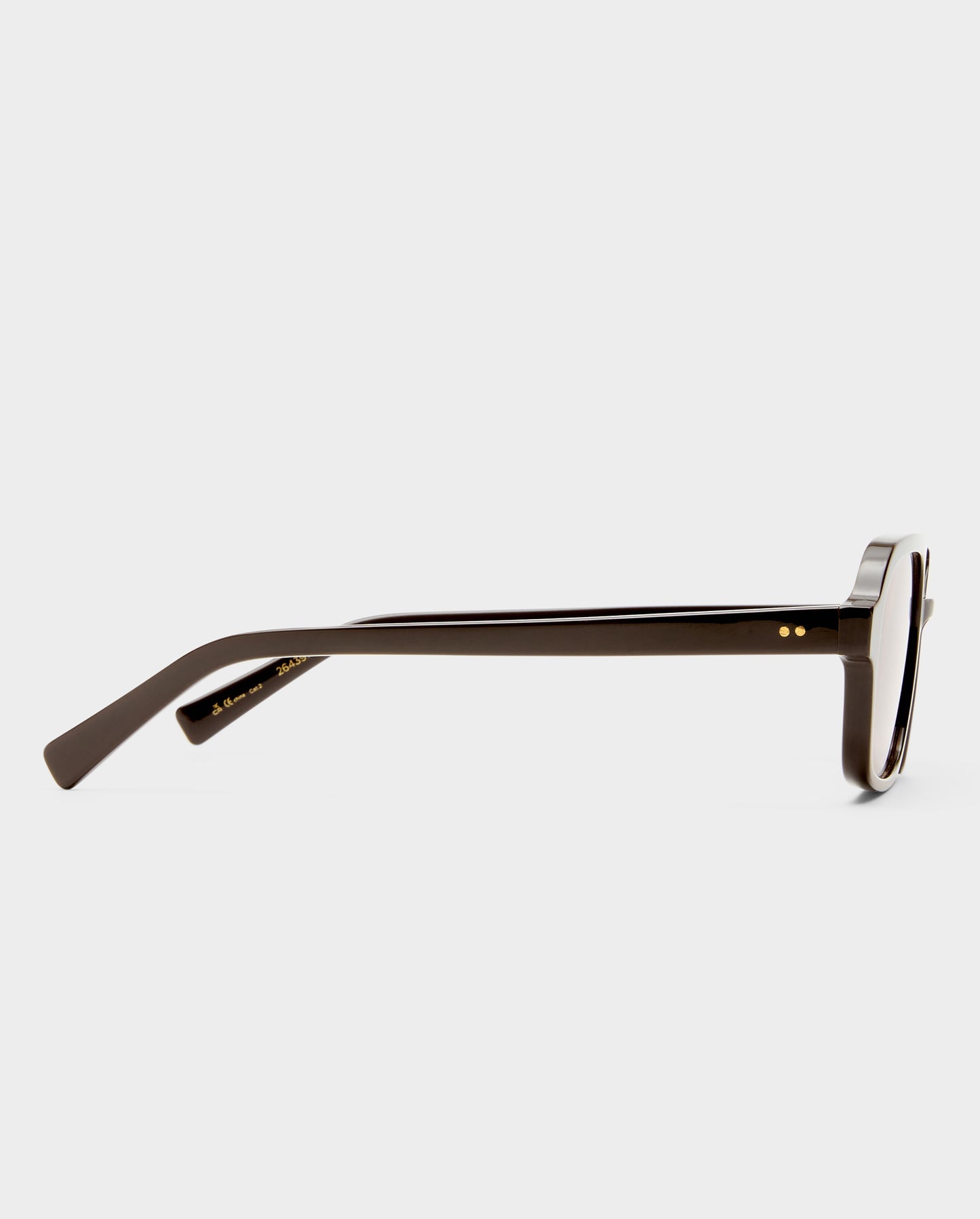 • Finished in a premium dark chocolate frame with gold tint lenses.
