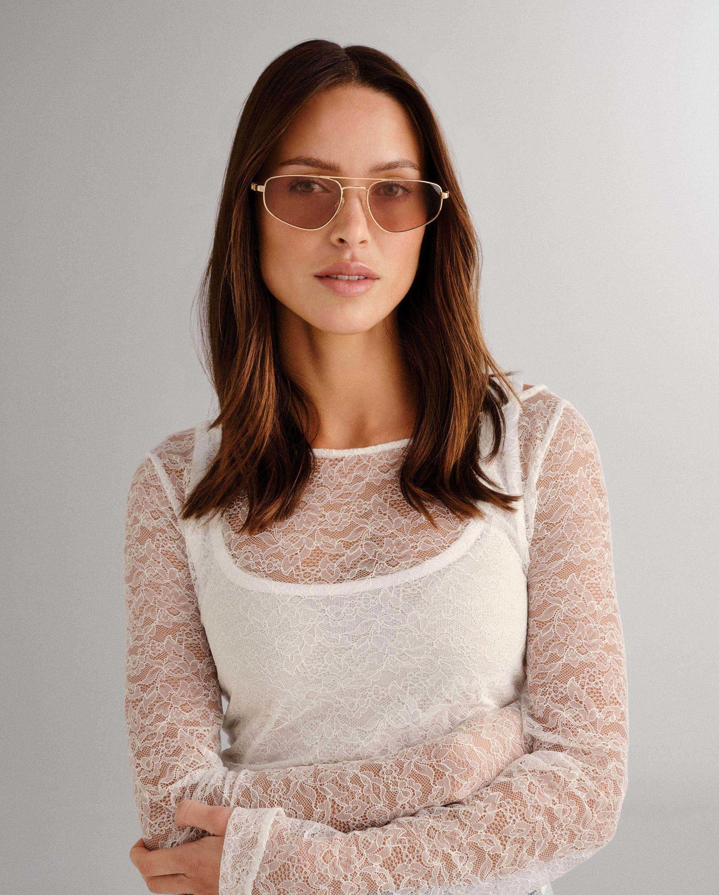 • Finished in a premium gold frame with brown tint lenses.