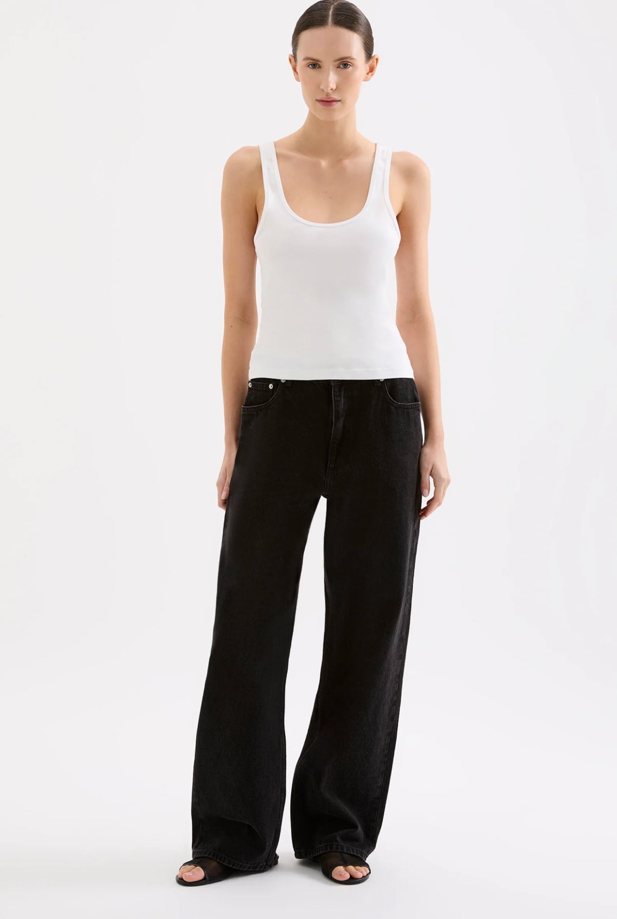 The Organic 90s Singlet is made from a lightweight organic cotton jersey, which has a soft, breathable hand feel. The silhouette is a classic slim fitting tank finishing on the hips. Features include thin straps and low scoop neckline.