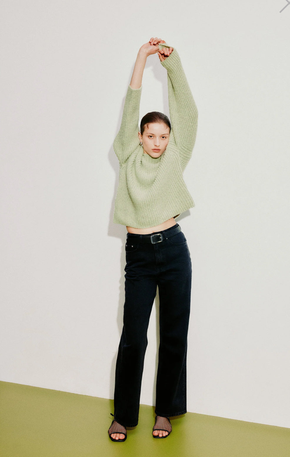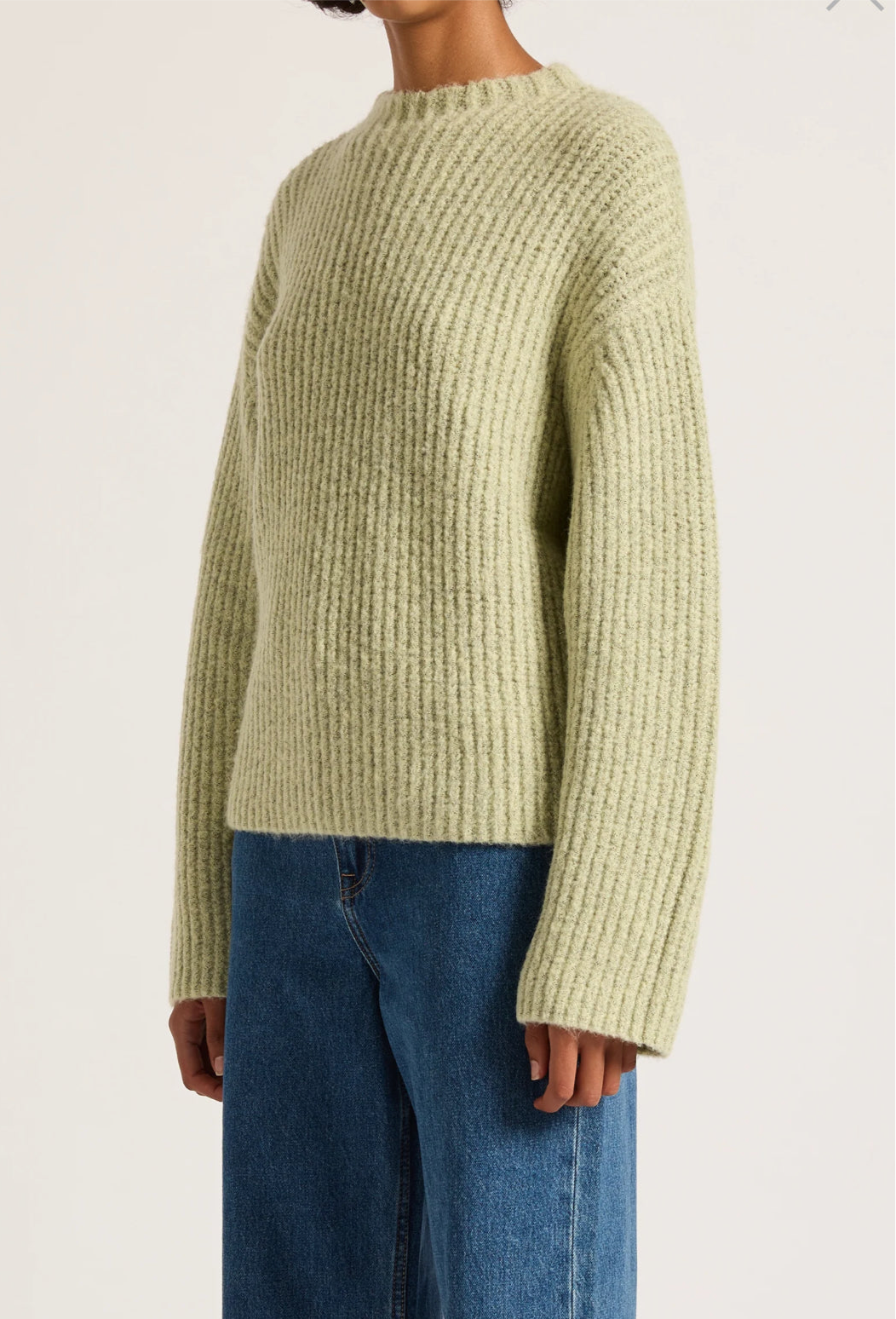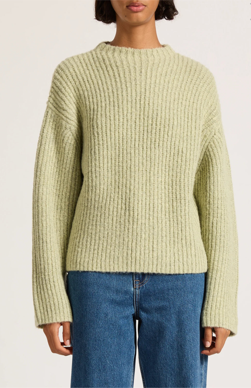 The Parker Knit is made from a soft midweight yarn with subtle fluffy texture. The silhouette is relaxed with a high neck and length finishing at the hips. Features include marled yarn effect and rib finish throughout.