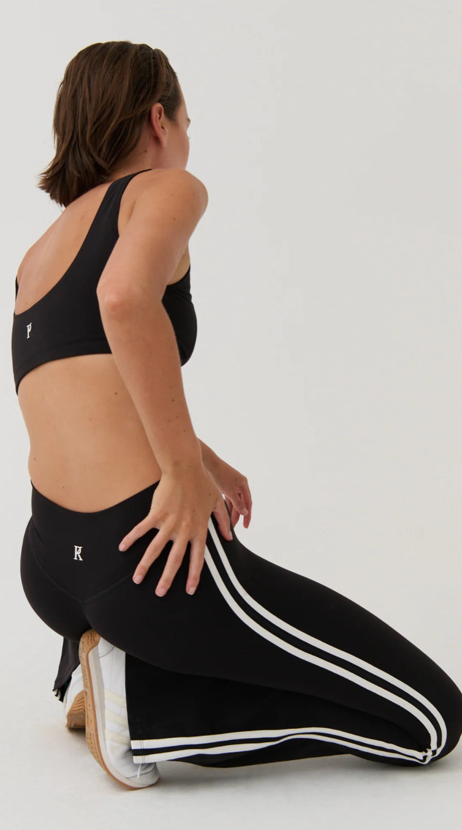 An essential, fashion forward addition to our core collection for contemporary movement. We've updated our Vibration Flare by elongating the bottom hem, making it more of a full-length fit for everyone yet maintained the ultra-supportive high waist, flattering curved seam detailed finish and retro flare! The Vibration Flare are the perfect blend of feminine and functional, crafted with our softest and most second-skin-like fabric ever. Now featuring our highly anticipated side stripe detailing for an aerodynamic aesthetic.